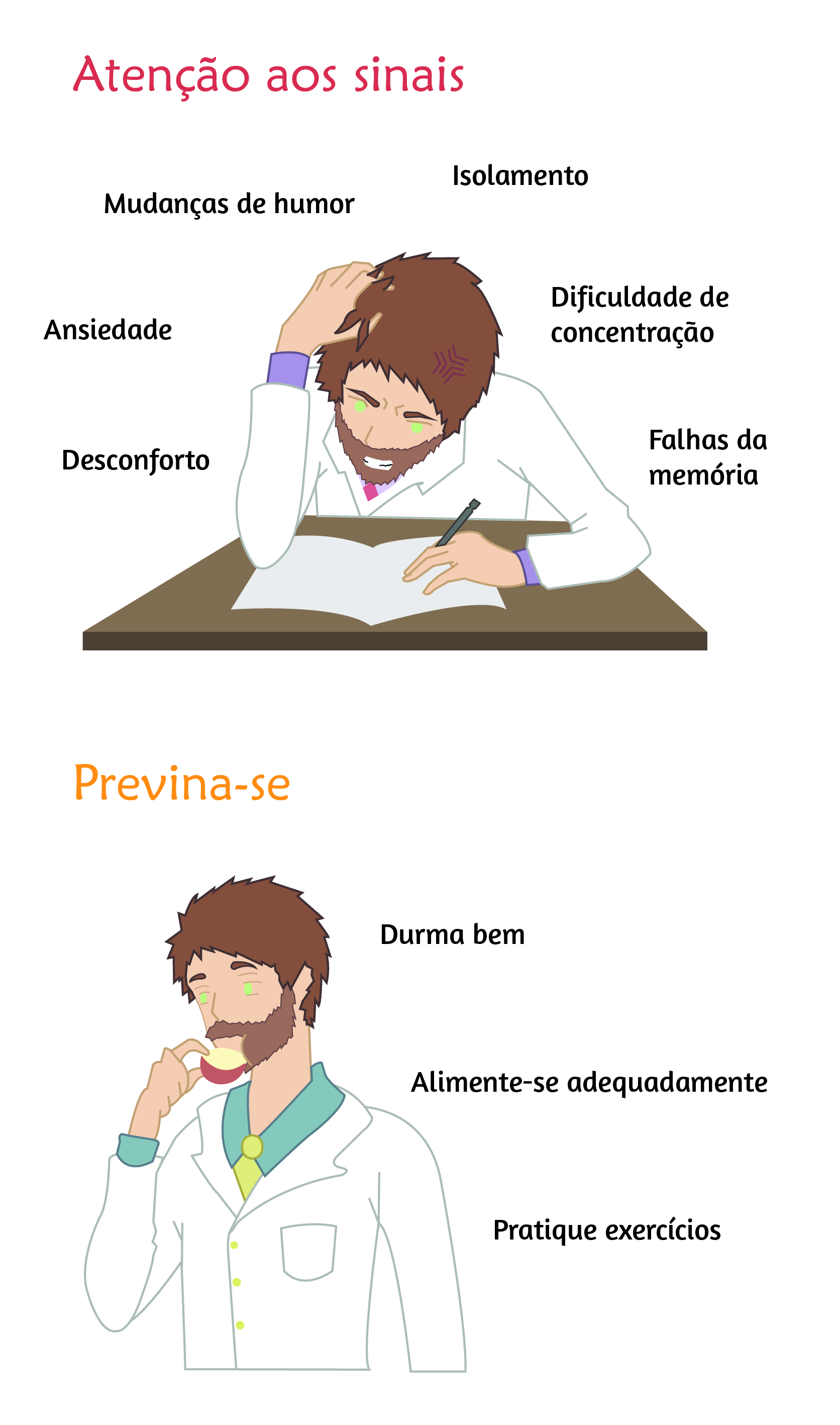 A partir de pequenos sinais (veja ilustração), podem ser desenvolvidos quadros como depressão, distúrbio do sono e hipertensão arterial, com redução na eficiência e motivação profissional.