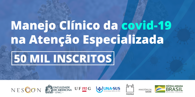 O curso “Manejo Clínico da Covid-19 Na Atenção Especializada”, desenvolvido pelo Núcleo de Educação em Saúde Coletiva (Nescon) da Faculdade de Medicina da UFMG, em parceria com a Universidade Aberta do SUS (UNA-SUS) alcançou o marco de 50 mil inscrições. A qualificação é direcionada a acadêmicos e profissionais de saúde de nível superior.