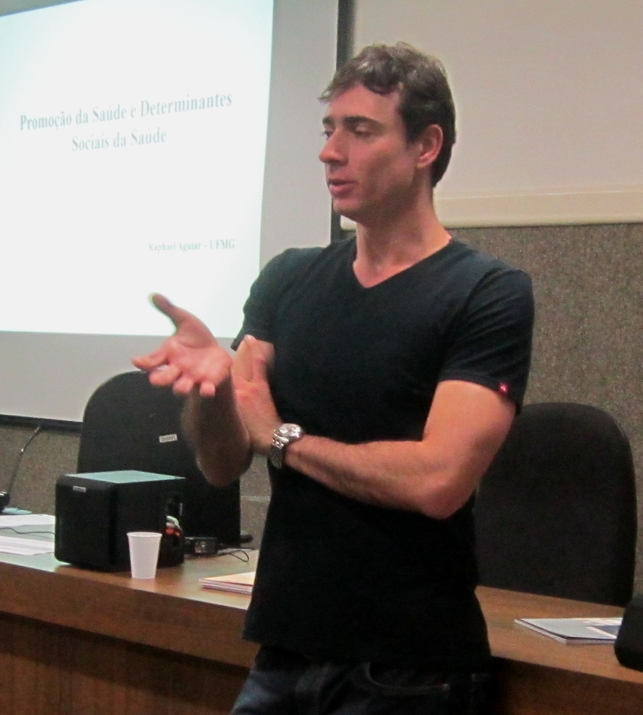 Nessa ideia, o professor mostrou como a educação, renda, segurança, transporte, entre outras questões, precisam ser trabalhadas em conjunto para promover a saúde. “Promoção de saúde é o processo de capacitação das pessoas para aumentar seu controle sobre a saúde e melhorá-la. São medidas não farmacológicas. Ou seja, tudo aquilo que a gente prescreve para o indivíduo que não tem a ver com tomar remédio, como dormir bem e comer bem”, explicou. Segundo ele, a Atenção Básica, por sua vez, abrange iniciativas que incentivam esta promoção. “Onde entra a educação física então? Tanto na atenção básica quanto na promoção. O educador tem que trabalhar articularmente com outras equipes de profissionais. É assim que a saúde deve funcionar”, relatou Raphael.