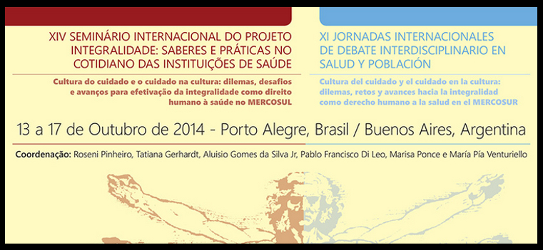 O XIV Seminário Internacional do Projeto Integralidade: Saberes e Práticas no Cotidiano das Instituições de Saúde será realizado de 13 e 17 de Outubro, paralelamente às XI Jornadas Internacionais de Debate Interdisciplinar da Área de Saúde e População. A programação dos dias 13 e 14 acontece em Porto Alegre, na Universidade Federal do Rio Grande do Sul (UFRGS). Já no dia 15, há atividades na Argentina, na UBA em Buenos Aires, onde os eventos seguem até dia 17.