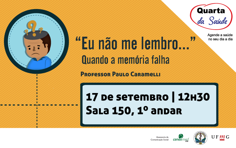 A memória é a capacidade de adquirir, armazenar e recuperar informações disponíveis internamente no cérebro. “Eu não me lembro…” quando a memória falha. Este é o tema da palestra do projeto Quarta da Saúde, que o professor do Departamento de Clínica Médica, Paulo Caramelli, fará no dia 17 de setembro, às 12h30, na sala 150 da unidade.