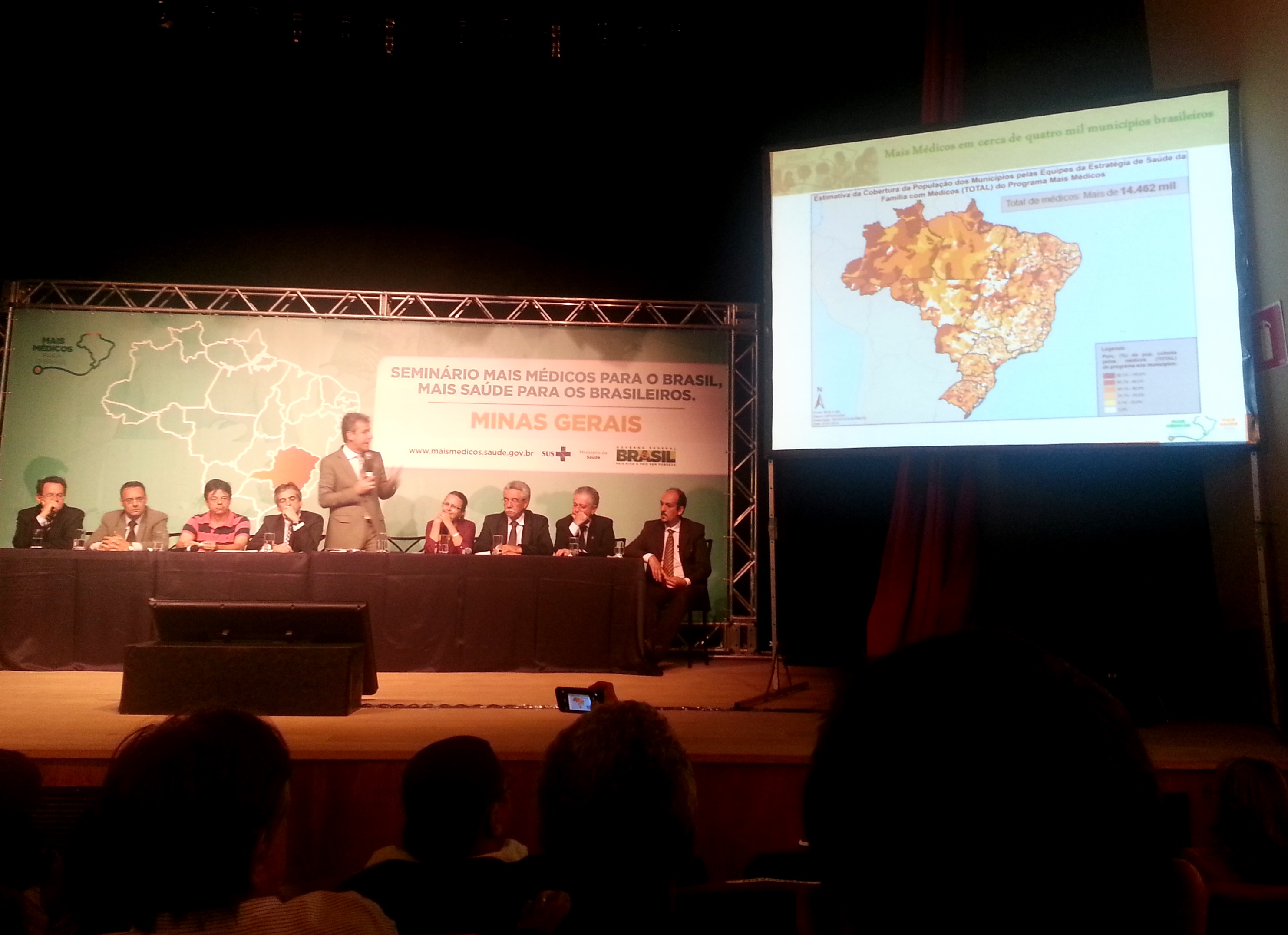 O ministro da Saúde chamou a atenção para os três componentes importantes do Programa Mais Médicos: melhoria da infraestrutura, formação de médicos e provimento emergencial. Nessa perspectiva, Arthur Chioro apresentou as mudanças iniciais ocasionadas pelo Mais Médicos em Minas Gerais. Segundo o ministro, mais de 4 milhões de mineiros foram contemplados.